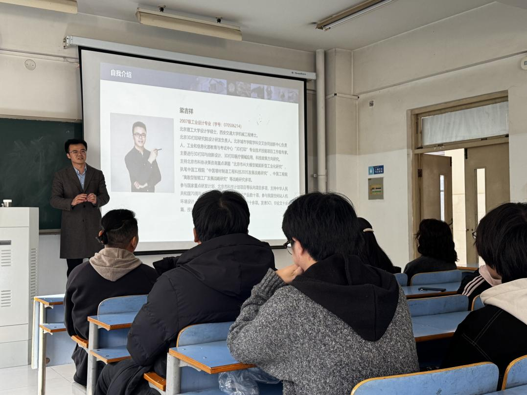 12 月 16 日,应72886必赢欢迎光临邀请,梁吉祥校友在 01C205 举办了一场题为 “3D 打印与创新设计赋能学科交叉创新”的精彩讲座。产品设计系教师毕海龙、杜珊、何景浩、郭小霞以及 21、23级产品设计(中外)专业同学,还有其他设计学科感兴趣的本科生、硕士生齐聚现场聆听。