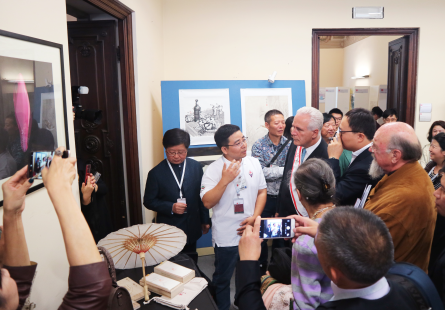王辅国总领事在致辞中说:中意同为历史悠久的文明古国,两国友谊源远流长,双边关系发展势头良好,各领域合作不断深化,人文艺术领域的交流日益密切,今天的展览能够让意大利朋友们感受到中国宣纸和国画艺术的魅力,进一步充实在文化领域的双边合作,推动、加深中意艺术文化交流。