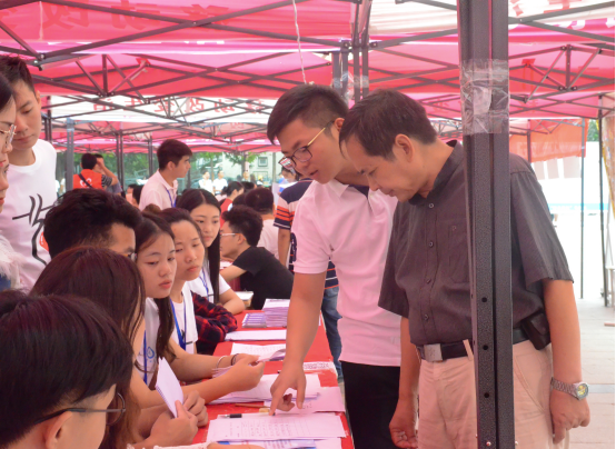 迎新工作由我院团总支学生会各部门负责,值班同学穿着由我院学生自己设计的衣服迎接新生,帮助新生完成注册、领取军训服以及宿舍入住工作,为新生解决问题。学院在大本营帐篷内设有家长休息区,行李存放区。值班同学认真安排每一项任务,以良好的精神面貌积极迎接新生,耐心回答他们的问题,为新生及家长提供最热情的服务和帮助。