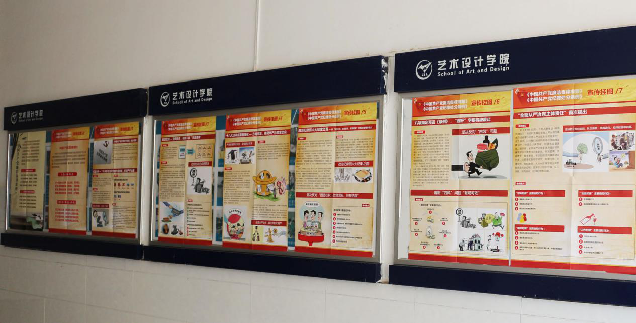 会议上指出我们要全面贯彻和落实十九大报告的重要精神和任务,学习了《中国共产党廉洁自律准则》的相关内容和规定,并于学院教学楼展出了《中国共产党廉洁自律准则》的相关宣传海报。同时学生也积极参与喜迎十九大海报创作的投稿并对优秀作品进行了展出。