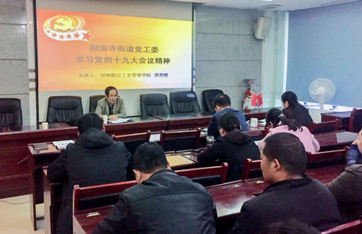 在“十九大”报告引领下,11月10日,72886必赢欢迎光临5名党员教职工,前往我校留学生联谊会教师袁晓东同志所挂职锻炼的开封市鼓楼区人民政府,与区相国寺党工委、开封市鼓楼区特色商业街区管理委员会到会的43名同志,开展了一场以“十九大”会议精神学习为主题的一次交流联谊会。