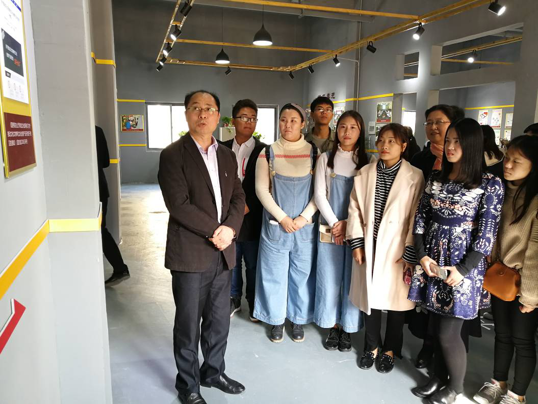 胡中艳在开幕式上致辞,就历年来我院师生积极参与河南省博物馆文创设计赛事的情况作了介绍,希望大赛越办越好。河南博物院党委副书记丁福利在致辞中围绕着博物馆“文创热”的大背景,从“坚持、创新、转化”三点内容展开,希望设计者在前期吃透文物的文化内涵,从而衍生设计出其适宜当代公众的“审美性”与“功能性”文化产品。在观展期间,他还生动地为我院师生讲解历届获奖作品的设计理念和寓意。