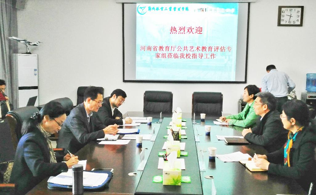 10月24日,由郑州轻工业学院教务处处长张东初,河南工业大学设计艺术学院院长王庆斌和郑州工程技术学院原音乐舞蹈学院院长朱英萍组成的河南省普通高校公共艺术教育评估专家组莅临我校,对我校公共艺术教育工作进行检查评估。