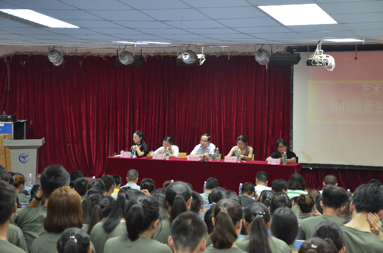 2016级辅导员韩子晔老师做最后总结发言,他希望新生们要学会做人,学会尊重,规范言行举止,做文明的艺设人。