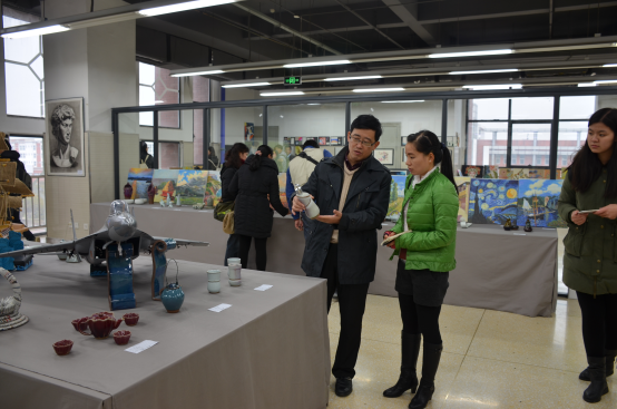 11月17日,由我院团总支学生会主办的"春华秋实"艺术节系列活动之艺术设计作品展于我校东校区图书馆三楼举行。我院党总支书记楚恩熠、院长胡中艳、党总支副书记周琰,副院长王沛等领导老师分别莅临现场参观。