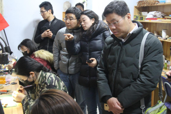 上午在冉献东的带领下参观了美术学院、设计学院的艺术展厅、实验实训中心和教师工作室。冉献东对美术学院的漆器工作室、皮具工作室、雕塑工作室筹建、运行与成果进行了介绍。在参观过程中各个工作室的负责人也与我院到访领导和各专业负责人进行经验交流分享。