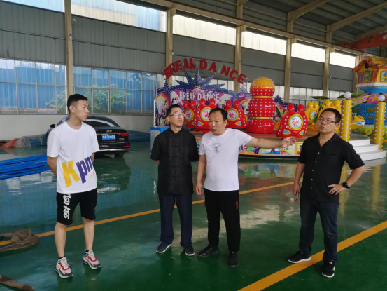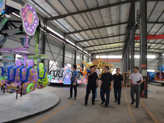 在郑州市神童游乐设备有限公司调研过程中,公司董事长慕香岭、营销总监郭建立对公司发展现状、经营范围、产品种类和发展规划等进行了详细的介绍,并一同参观了产品陈列室,对豪华转马、皇冠战马、海盗船等系列产品进行了详细介绍。在郑州航天游乐设备制造有限公司,公司董事长石福顺对公司的经营理念、质量方针、经营战略、游乐设备在全国范围内的分布状况及河南省游乐设备的现状等进行了详细介绍,并一同参观了产品生产车间。