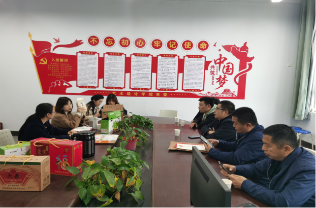 会议伊始,周琰指出我院在党史学习教育活动中,注重将教育学习与实践转化一体统筹推进,秉持“服务社会、开放办学”理念,积极发挥专业和人才优势,推动产业扶贫、知识扶贫,为乡村全面振兴做出贡献。靳攀重点介绍了范县陈庄镇的农产品基本情况,希望与我院建立合作关系,对其农产品进行设计和优化,推动范县农产品形成品牌、长远发展。杜珊对范县农产品进行了分析,建议结合当地文化与特色进行设计。最后,周琰强调我院坚决贯彻落实“学党史、悟思想、办实事、开新局”要求,扶贫工作一直在行动、见实效,今后将加大实践转化力度,着重发挥专业特长和人才优势,不断提高师生服务社会、报效国家的能力素质,全面服务乡村振兴战略。