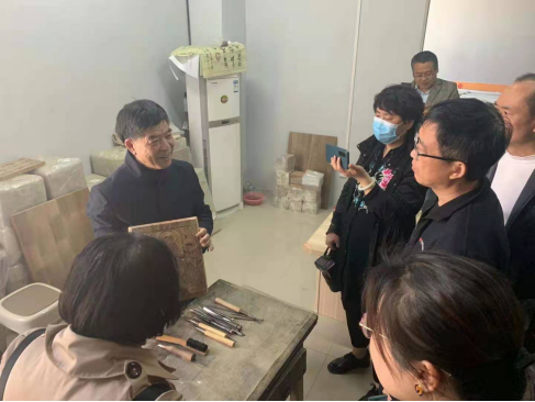 上午,在国家级木版年画非遗传承人任鹤林先生的陪同讲解下,大家了解了我国民间木版年画的发展历史,欣赏了不同时期代表性的木版年画作品,感受了年画作品中所蕴涵的丰富的民俗传统与文化。期间,传统艺术进校园、非遗传承与创新活化设计等问题引发大家的深入思考与热烈讨论。