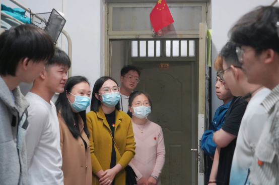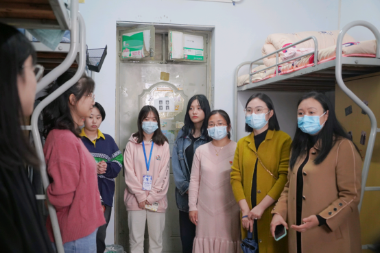 10月14日上午,我院党委书记周琰、党委副书记祁蒙、分团委书记兼2021级辅导员杜敏前往学生宿舍看望新生,并对学生报到情况和宿舍安全情况进行了解。