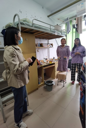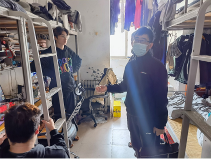 近期国内疫情态势不断蔓延,郑州市疫情防控陡然严峻,我院领导在疫情紧张封闭的状态下对防控指令和信息排查要求迅速响应,积极作为,主动走进学生宿舍,慰问学生生活,并指导学生有序进行卫生防疫工作,保证日常生活和学习的顺利进行。孙建华为同学们普及疫情防控知识,加强防疫意识,希望同学们能积极主动的进行心理调适,树立乐观心态,并提醒大家入冬要及时增添衣物,做好保暖工作,作息规律,注意身体健康。周琰与学生亲切交谈,询问同学们在生活上是否需要帮助,安抚同学们在严峻疫情期间的紧张情绪,并叮嘱大家一定要做好个人防护,注意通风,落实晨午检制度,自觉测温上报,每天坚持健康打卡,如有发热情况及时报告,学院定会第一时间处理并给予同学们及时帮助。祁蒙叮嘱同学们要养成良好卫生习惯,戴口罩、勤洗手、常通风、保持社交安全距离,同时强调在疫情防控面前,我们每个人都是一道防线,希望大家继续保持高度警惕,从思想上绷紧疫情防控这根弦,做到思想不麻痹、防控不松懈、口罩不摘除,共同筑牢疫情防控墙。