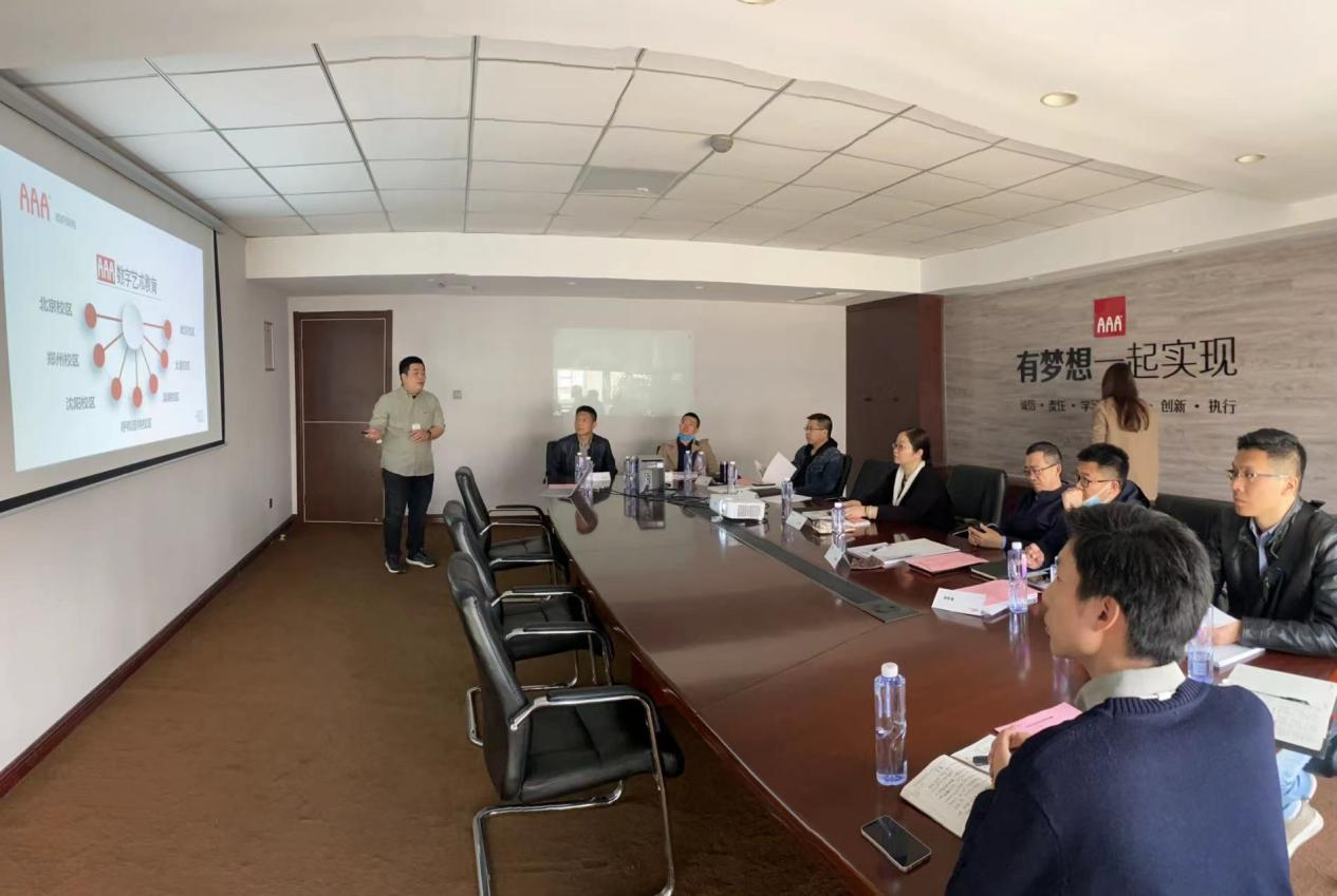上午大家参观了AAA教育集团郑州总部,详细了解了该企业的教育理念和培养流程方法,认真听取了该公司关于院企联合培养2017级高质量就业卓越班学习和就业情况的详细汇报,以及近期培训课程体系目标更新情况。