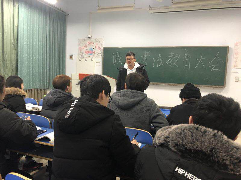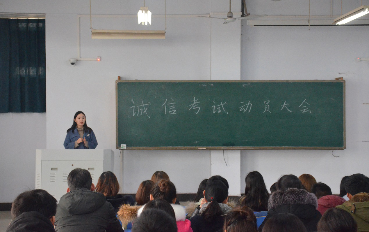 近日,为加强我院考风建设,营造良好的考试环境,我院各年级辅导员分别于07教学楼主持召开诚信考试动员大会,同学们到场聆听,积极响应号召。